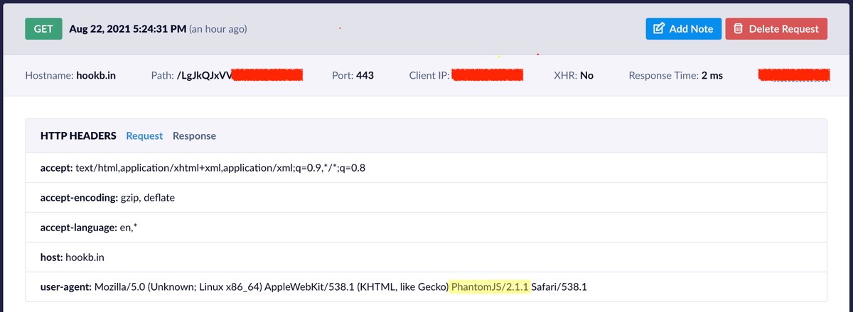 Now it was time to check what am I dealing with so I started by injecting an iframe to hookbin.com and I got this: